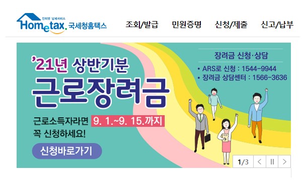 2021년 상반기 근로장려금 신청 및 접수 안내입니다.